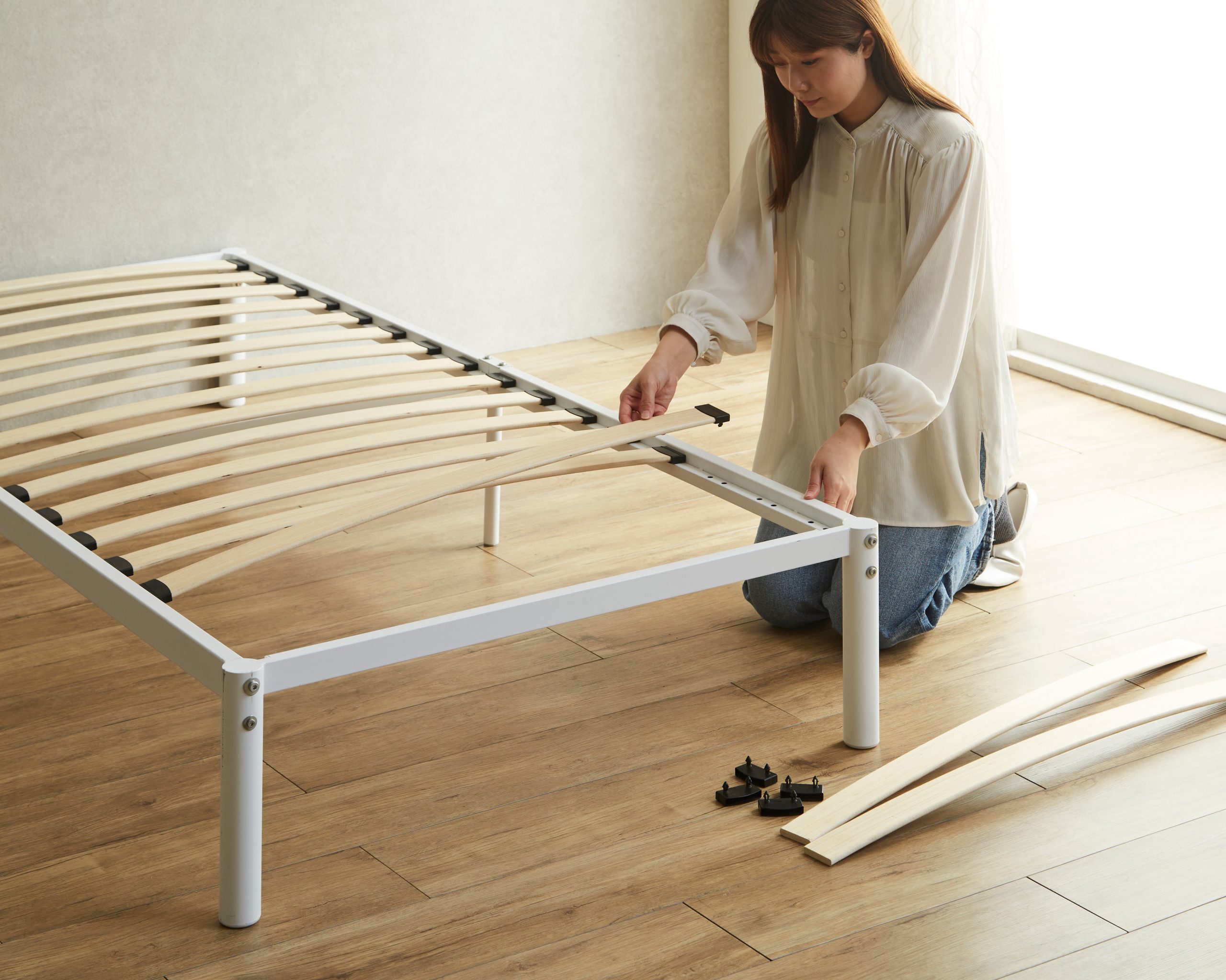 材質:フレーム:スチール(粉末塗装)、LVLすのこ床板