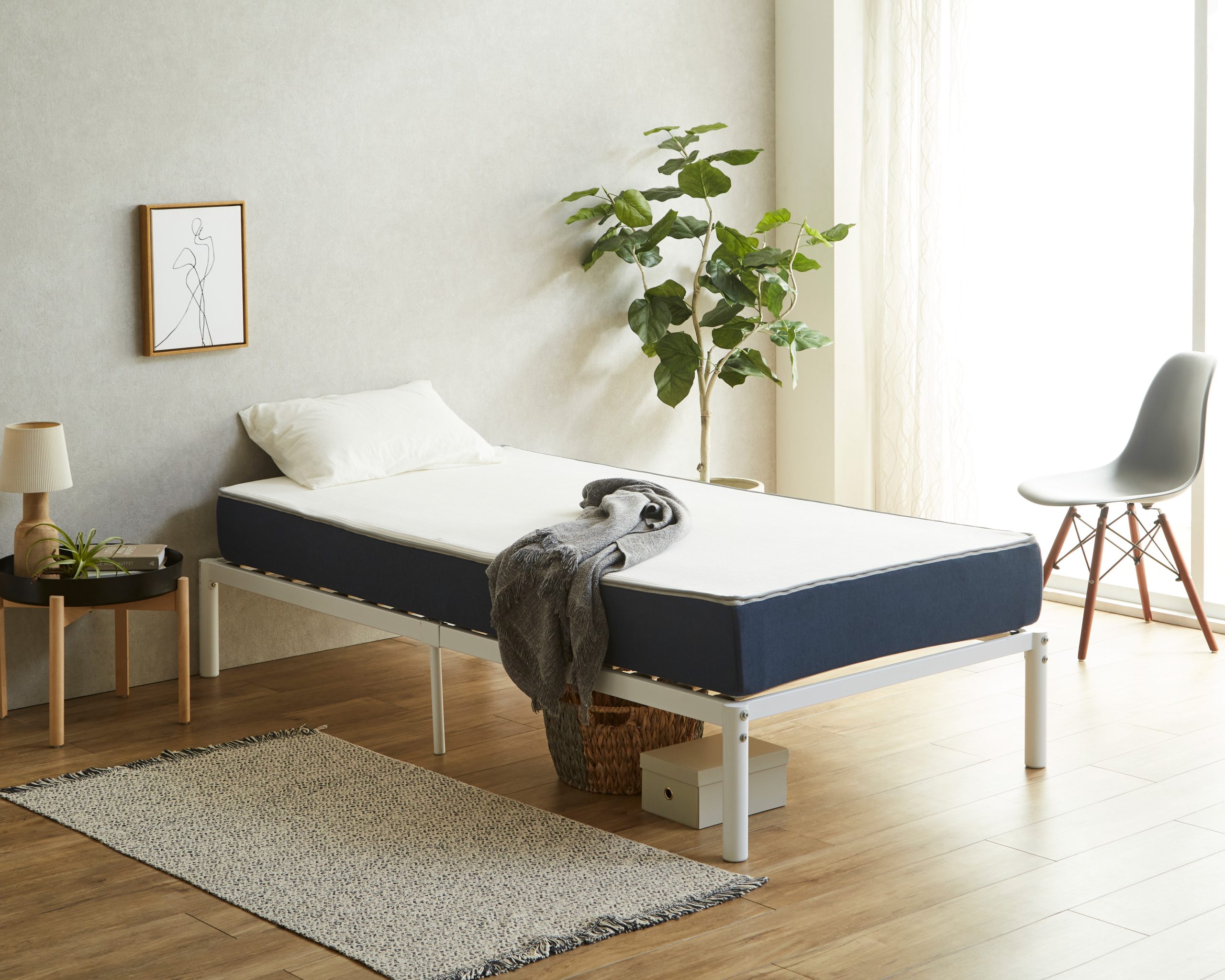 シンプルで頼れる、パイプベッド「ヌービス NUBIS」。スチールフレーム×すのこ構造で、見た目はすっきりコンパクトなのに、毎日の寝台にうれしい頑丈設計です。一人暮らしの新生活や引っ越し、ワンルームの省スペースにもぴったり。床板には、しなやかに受け止めるウッドスプリング(LVL)を採用。体の動きに合わせて程よくたわみ、クッション性と体圧分散をサポートします。さらに通気性に優れているので、湿気がこもりにくくオールシーズン快適。お手入れもしやすく、清潔に使えます。
